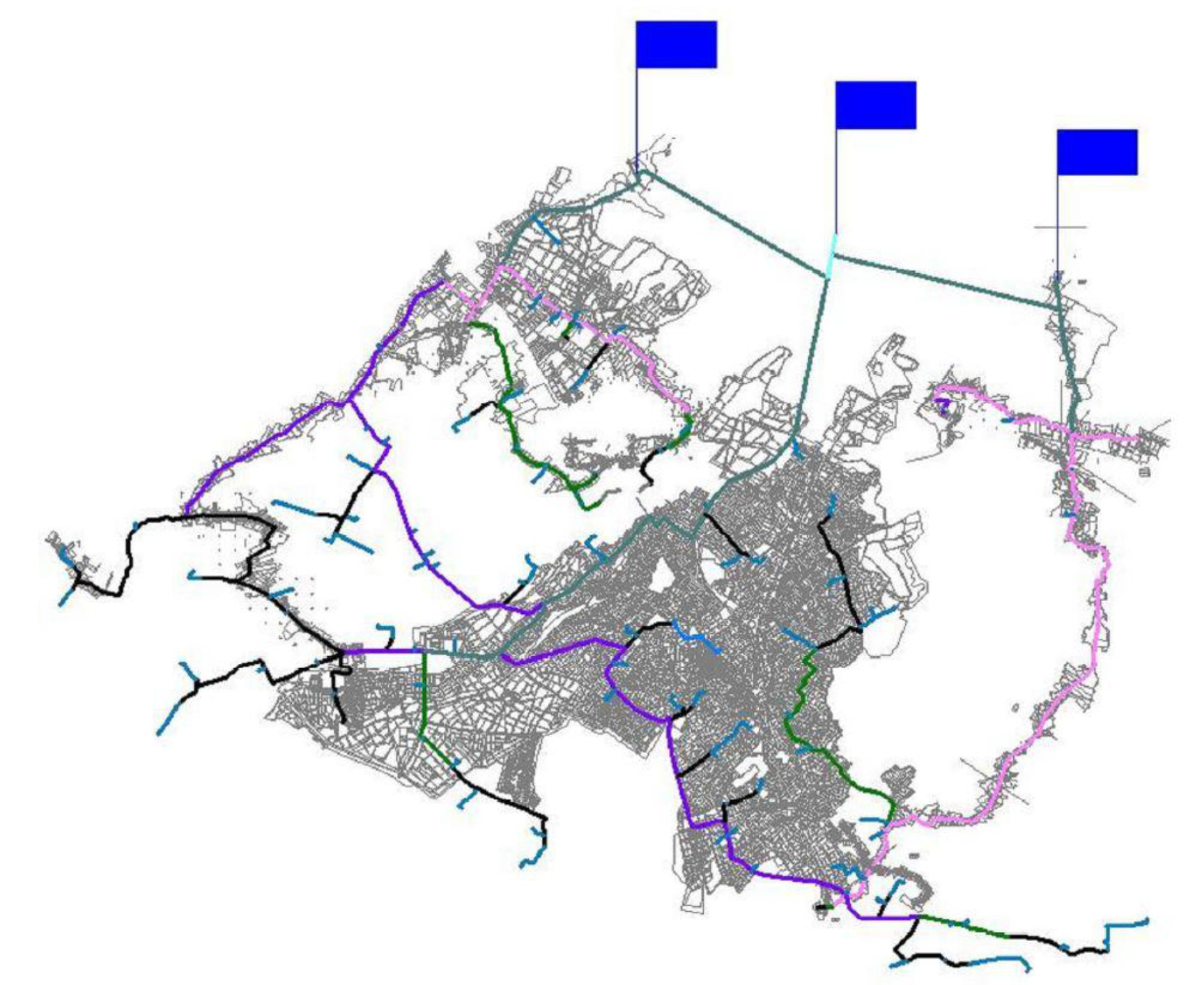The DXF and SHP import rutines allow automatic creation of a GASWorkS model from a CAD drawing or GIS data set.