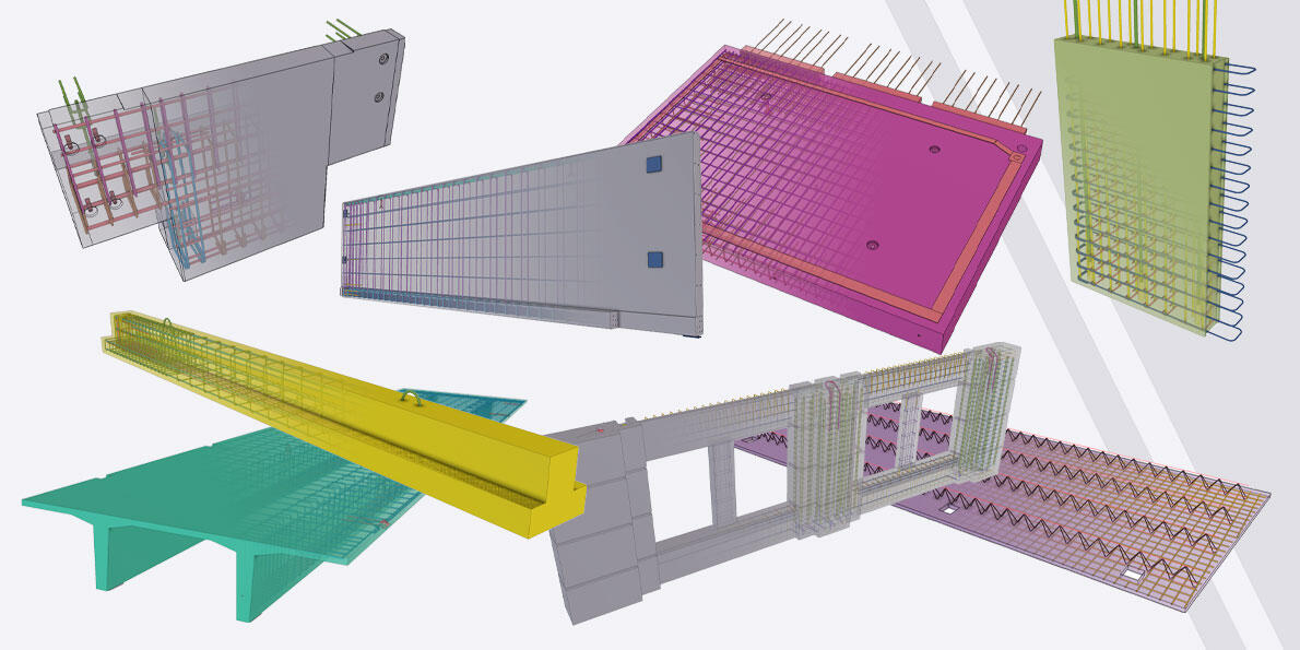 Tekla Structures is ideal for modeling a wide variety of precast products. Here are some examples of element types created in Tekla Structures: