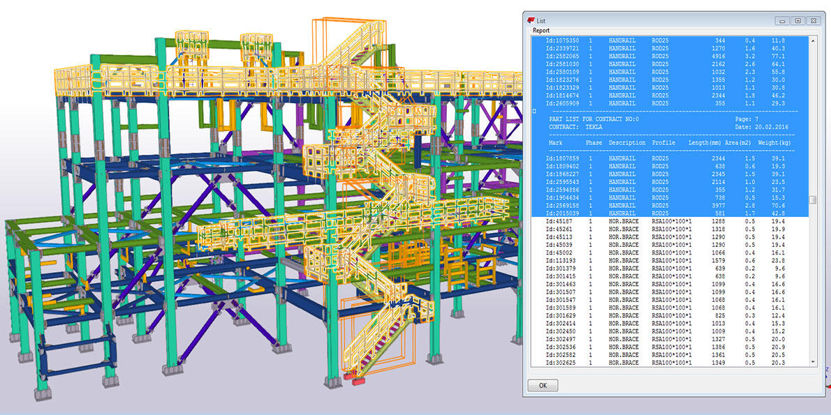 When Tekla Structures model is the source of information, you always have the same consistent data, be it for material lists, reports, fabrication drawings or data for the production office, shop floor and CNC machines.