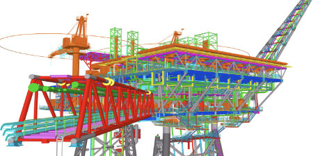 You can model even the largest structures. Everything in a project fits into a Tekla model: 4D visualizations, pipes, welds and bolts. You can also use the model to get information about weight of the structure and the position of the center of gravity, and the information also serves maintenance and eventual decommissioning. Interface with plant design software reference models to support accurate design. Benefit from the model throughout the structure lifecycle.
